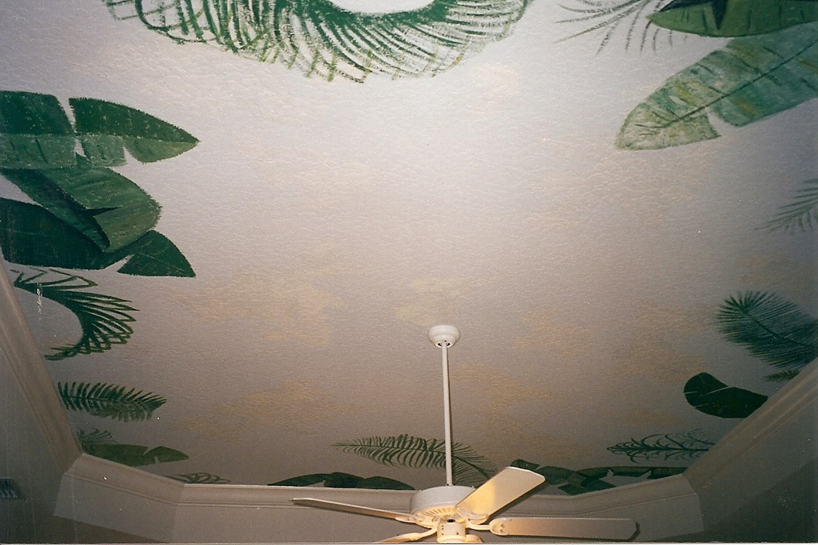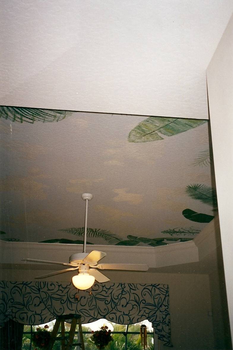 Detail of palm fronds on the ceiling.
