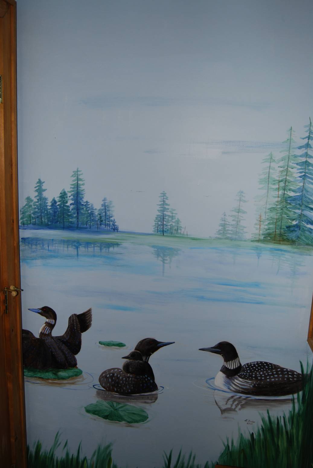 Lake scene with ducks.